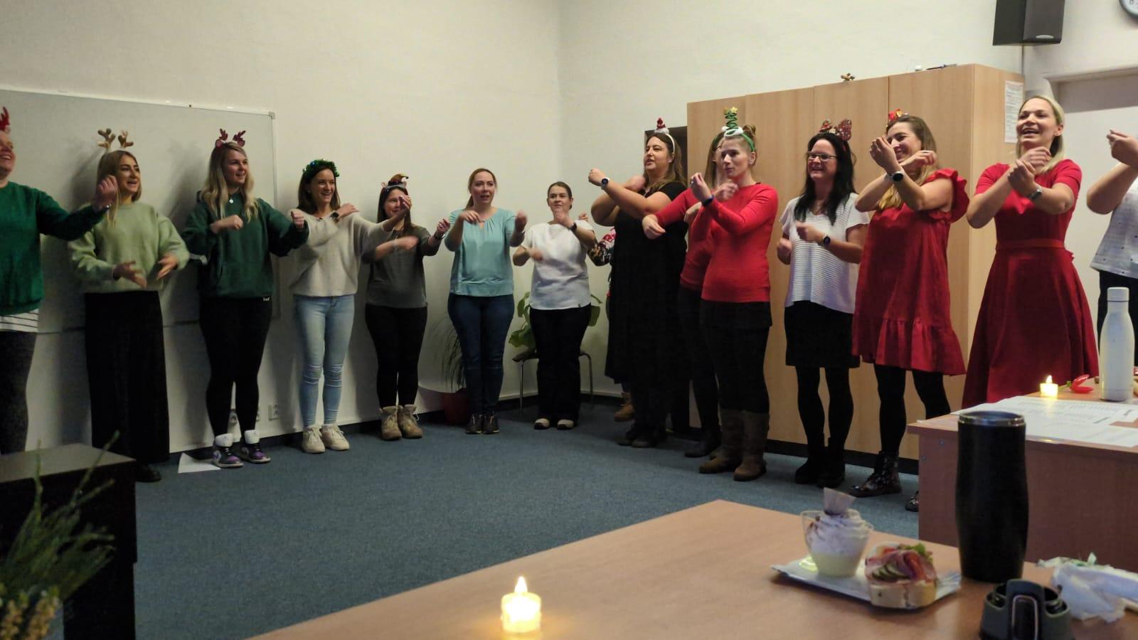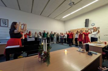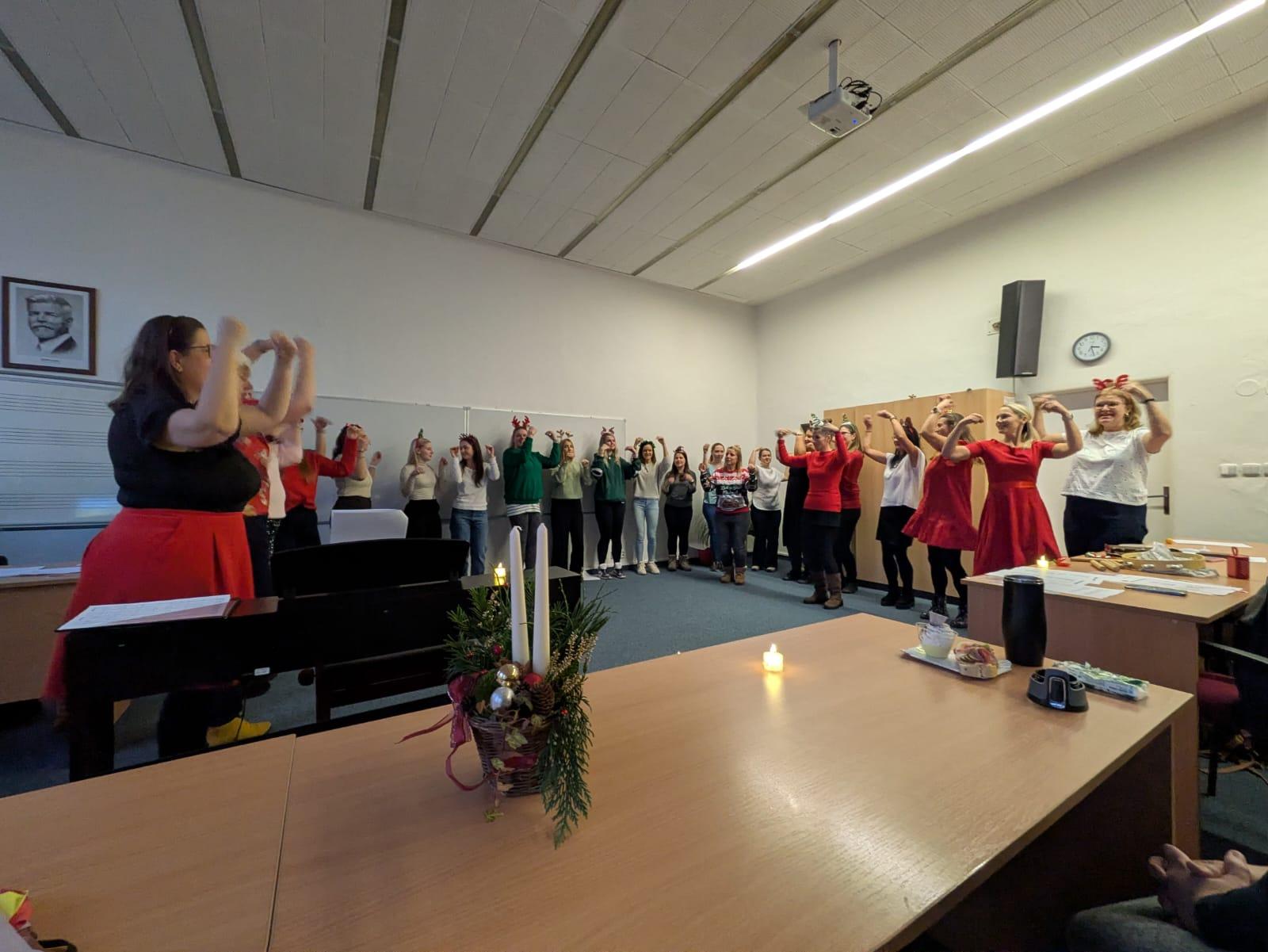 Studentky třídy 2.A si v předvánočním období připravily milé a pečlivě nacvičené vánoční vystoupení, které s radostí předvedly svým kolegyním z jiné třídy.
